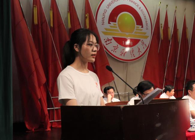 2022届毕业生代表、金融1854班徐巧婷同学发言,分享了大学学习经历和追求梦想的心路历程,代表全体毕业生感谢母校的辛勤培育,表示将时刻铭记校训,砥砺奋进,赓续芳华,为实现中华民族伟大复兴的中国梦贡献青春力量。
