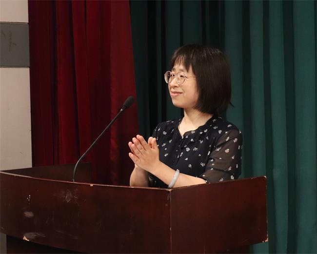 教师代表、会计系党支部书记孙海燕发言,她希望同学们做有道德、懂自律、有目标、内心强大的人,向初心前行,披荆斩棘、乘风破浪,在百年未有之大变局中书写青春力量。