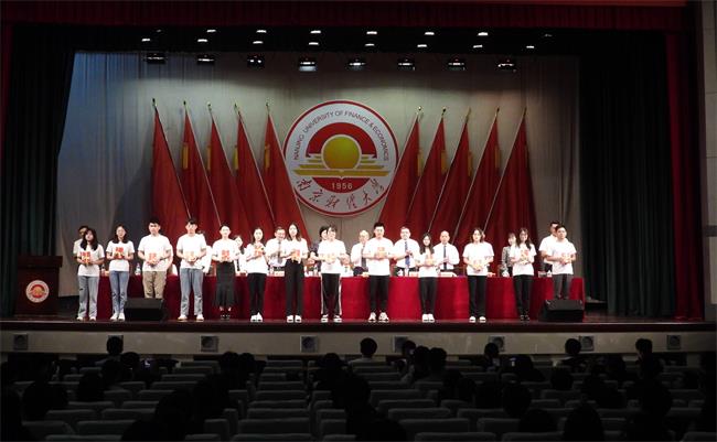 财管1954班赵一凡同学代表全体在校生发言,祝福学长学姐们心中有念,眼中有光,继续奋斗,谱写属于自己的人生华章。