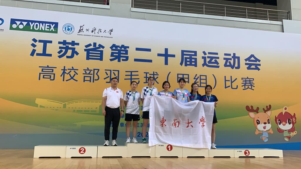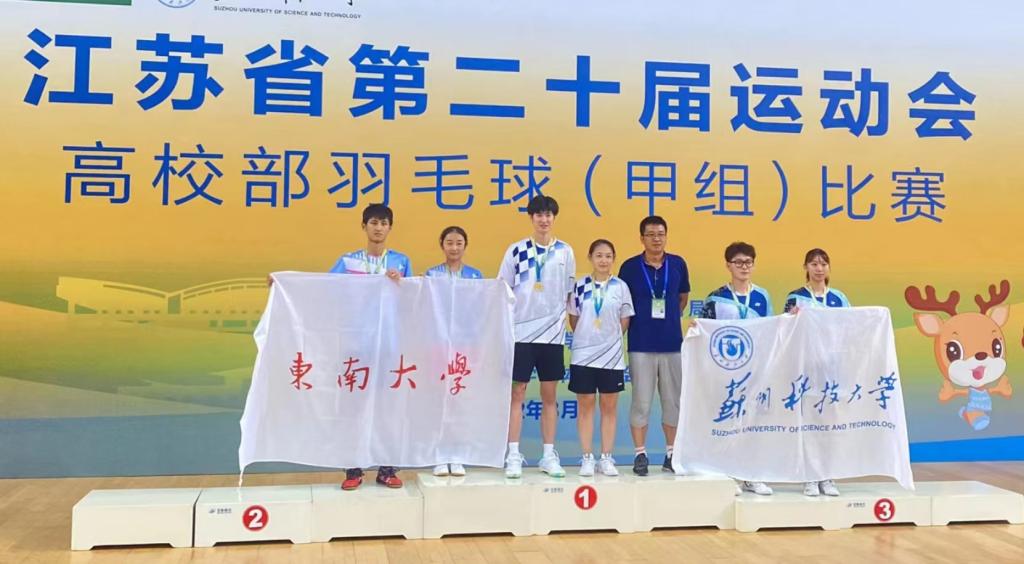 江苏省第二十届运动会高校部比赛分为本科院校高水平组(甲A)和本科院校普通组(甲B),共有男团、女团、男单、女单、男双、女双、混双七个竞赛项目,bat365羽毛球项目代表队参加甲A组比赛,在体育部主任何强为领队、潘杰年老师为主教练的带领下,队员傅泓翔、张容瑞、杜仲夏、魏楷培夺得男团冠军,傅泓翔和张容瑞夺得男双冠军,傅泓翔、贾子硕夺得混双冠军,贾子硕、张宇洁夺得女双亚军,贾子硕、谭玏瑄、廖梓含、张宇洁夺得女团季军。