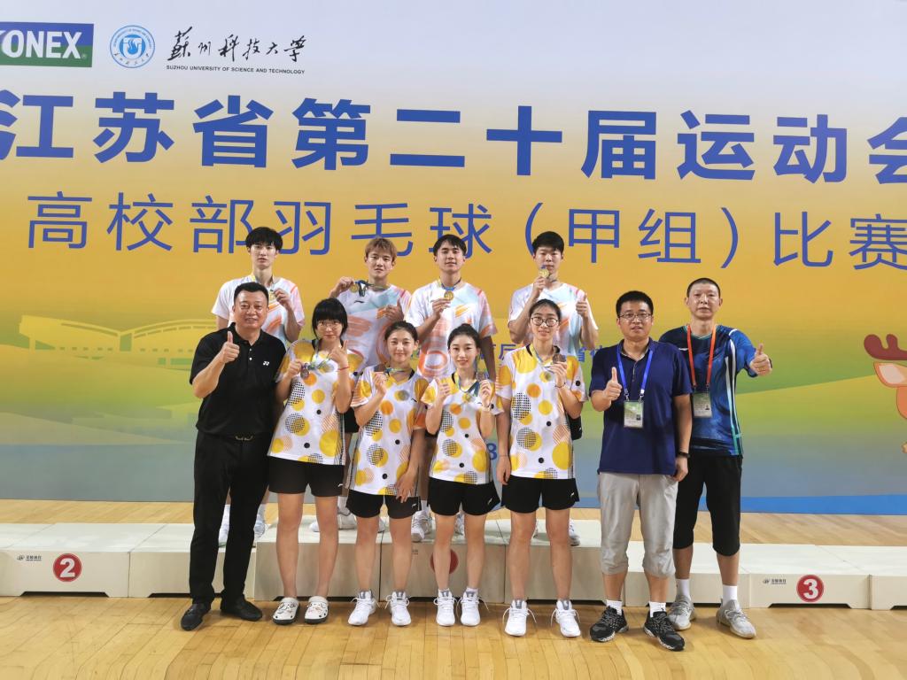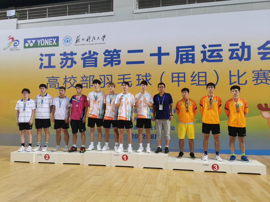 2022年8月2日-6日,由江苏省教育厅、江苏省体育局主办,江苏省体育协会协办,苏州科技大学承办的2022年江苏省第二十届运动会高校部羽毛球(甲组)比赛在苏州科技大学体育馆举行,共有44所院校、326名大学生运动员参加了该项高水平赛事。经过顽强拼搏,bat365代表队以不懈努力和过硬的实力喜获佳绩,夺得男子团体、男子双打、混合双打三个项目的冠军,女子双打获得亚军,女子团体获得季军,最终获团体总分第二名。