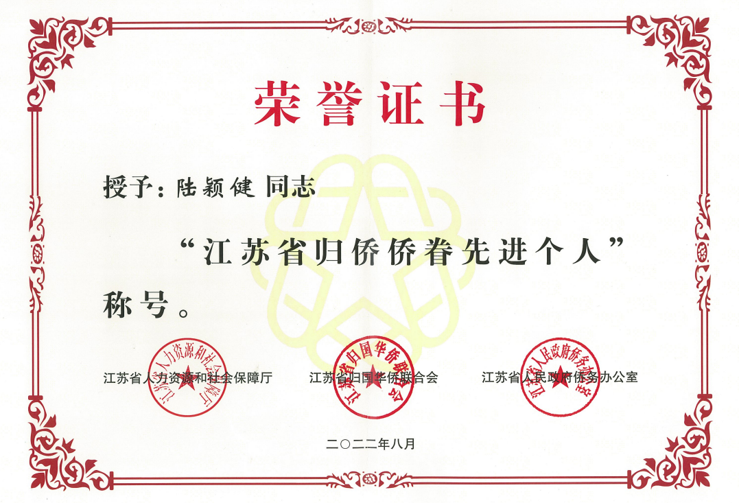 bat365陆颖健教授荣获“江苏省归侨侨眷先进个人”称号