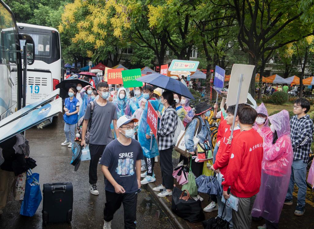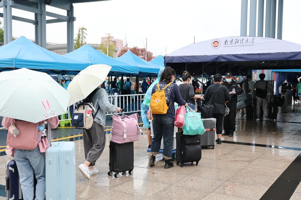 各部门各负其责、通力协作,迎新现场秩序井然,赢得了新生及家长的好评与赞誉。党委组织部会同机关党委、体育部党总支、图书馆党总支等二级党组织动员50余名教工志愿者全天候参与校门现场秩序维护、核酸检测、新生行李搬运等迎新志愿服务工作;学生处开通了绿色通道,同时联合对外联络处为家庭经济困难学生免费发放“瑞华春雨助学金新生礼包”;校团委招募270余名青年志愿者参与南京南站、南京火车站、南京小红山客运总站新生接站以及校内迎新工作,现场发放新生入学指南,为新生提供各类信息咨询服务;信息化处为迎新一线的网络通讯、新老校园卡系统的稳定运行,以及迎新系统的建设和运行提供支撑保障;后勤基建处安排手推车和免费巴士,帮助新生运送大件行李,接送新生直达学生公寓;保卫处做好现场交通指挥和疏导。