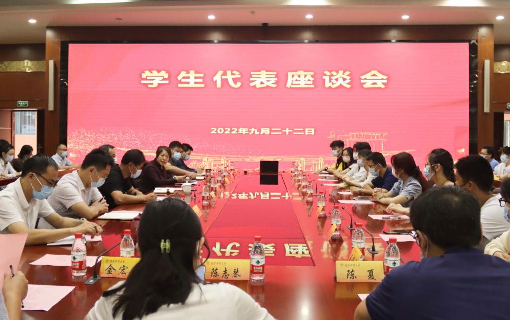 为了解疫情防控期间在校学生的思想动态和学习生活情况,做好教育管理与服务工作,9月22日下午,bat365在仙林校区工科楼二楼会议室召开新学年第一次学生代表座谈会。党委常委、副校长李群出席座谈会,党校办、党委学生工作部、党委研究生工作部、校团委、保卫处、教务处、后勤基建处、信息化建设管理处及图书馆等相关职能部门负责人以及来自各学院的学生代表参加座谈会。会议由党委学生工作部部长韩力争主持。