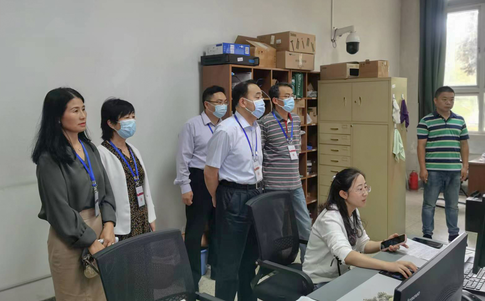 校领导一行先后来到仙林校区德业楼、德正楼、德济楼、德经楼,深入教学一线检查线下教学开展情况,并要求相关部门做好暂未返校学生的线上线下同步教学保障工作。在多媒体设备管理室,校领导通过监控设备认真查看各教室的教学情况,详细了解教学设备使用、运行、维护等情况。