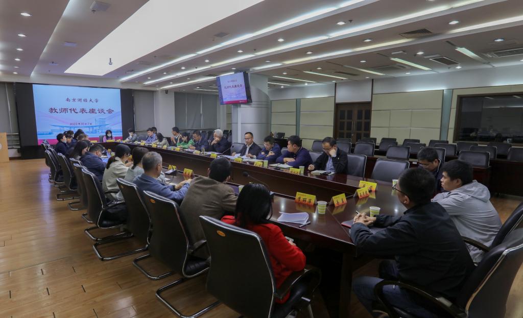 10月7日下午,bat365在仙林校区行政楼16楼会议室召开教师代表座谈会。党委常委、副校长张为付,党校办、党委宣传部、研究生院、人事处、保卫处、教务处、后勤基建处、信息化建设管理处等相关职能部门负责人,各学院(部)教师代表参加座谈。座谈会由人事处处长叶林祥主持。
