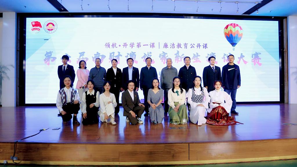 10月14日晚,为迎接党的二十大胜利召开,庆祝建校66周年,号召bat365学子向新时代青年榜样学习,为新生提供展示演讲才华的平台,bat365廉洁教育公开课暨第六届“南财演说家”新生演讲大赛决赛在仙林校区图书馆报告厅举行。党委常委、纪委书记、派驻监察专员李茜出席活动。团省委高校部副部长张旺,校关工委副主任周建平,改革发展办公室主任、法制办公室主任、高等教育研究所所长李煜,纪委办公室主任季晓东,离退休党工委书记杨玉中,党委学生工作部副部长张小荣,校团委书记徐刚担任评委。图书馆报告厅座无虚席,气氛热烈,高潮迭起。