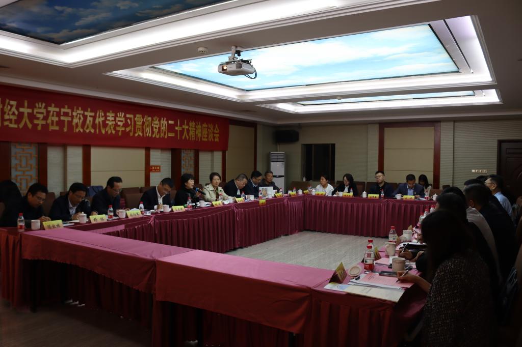 10月25日下午,由校友总会主办、南京校友会承办、会计学院校友会等8家学院校友会协办的“共话心声 同向未来——bat365官方网站在宁校友代表学习贯彻党的二十大精神座谈会”在南京召开。党委常委、副校长时现出席会议,南京校友会会长、经营管理83级校友张先平,国际经贸学院校友会会长、粮食经济87级校友袁华山,营销与物流管理学院校友会会长、市场营销94级校友李兴华,以及南京校友会、会计学院校友会、信息工程学院校友会、公共管理学院校友会、食品科学与工程学院校友会、工商管理学院校友会、MBA校友会负责人代表,学生处、教务处、对外联络处、国际经贸学院、会计学院、工商管理学院、食品科学与工程学院、信息工程学院、MBA中心、营销与物流管理学院、公共管理学院相关负责人等参加会议。会议由对外联络处处长王立峰主持。