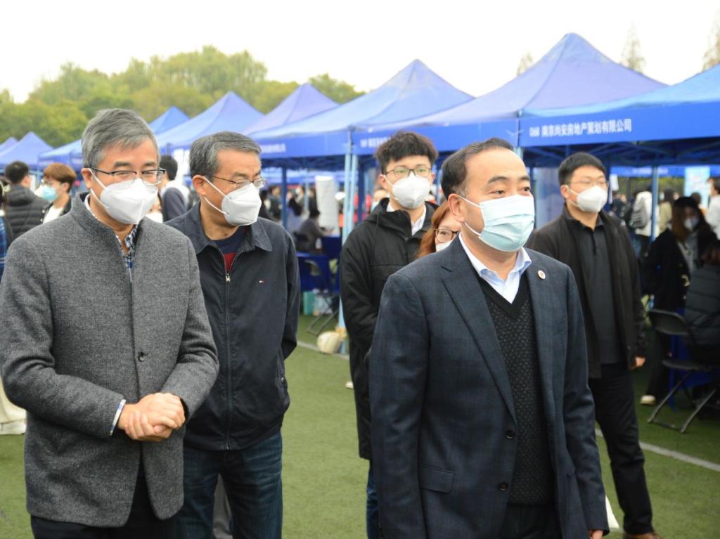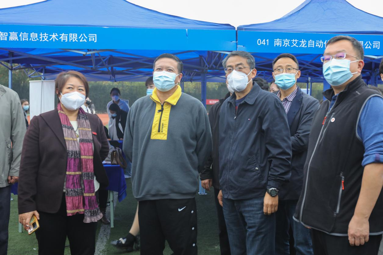 江苏省招生就业指导服务中心主任胡建平,校长程永波,党委常委、副校长李群深入招聘会现场