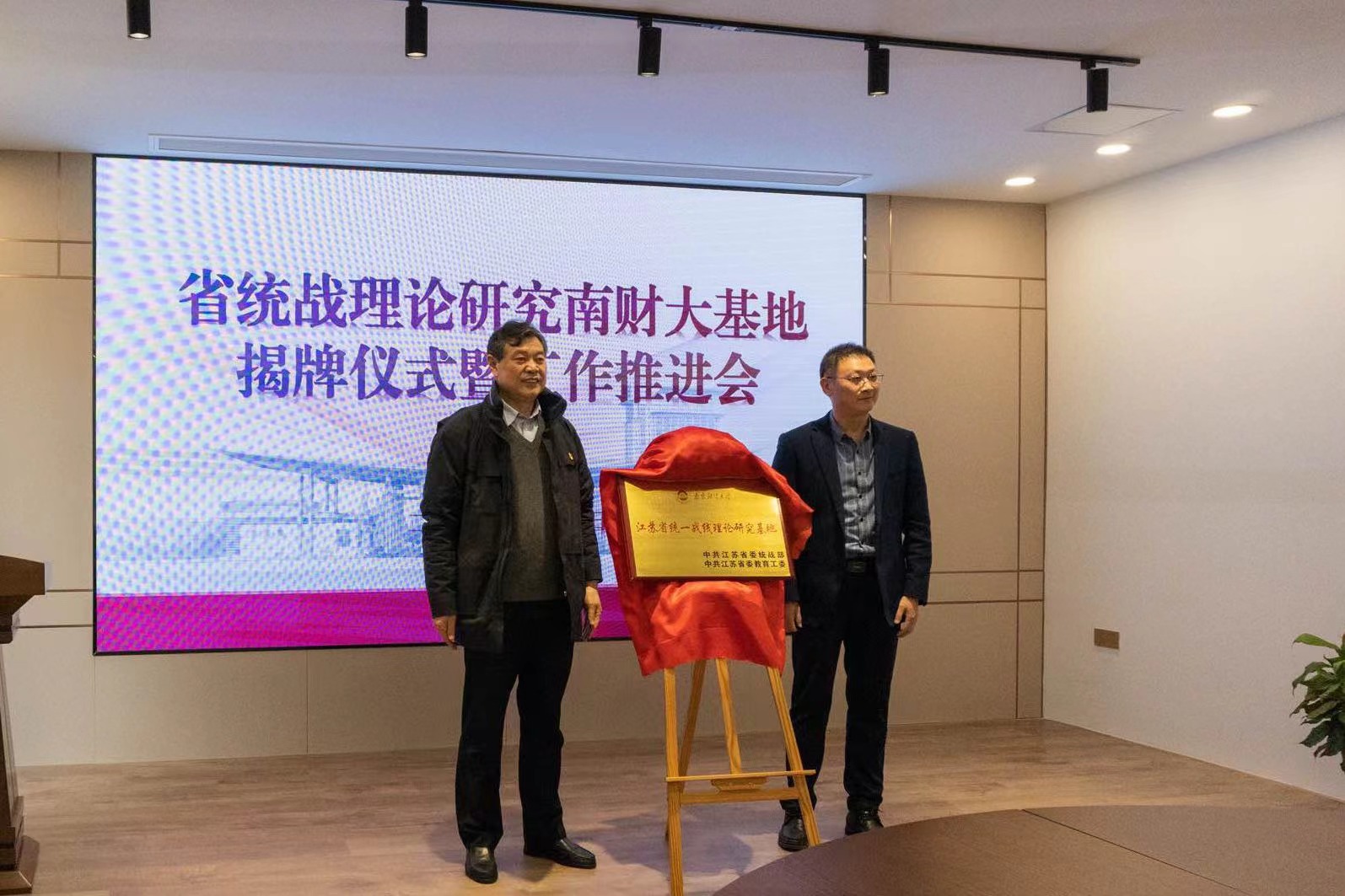 揭牌仪式上,校党委副书记(正校级)、基地主任温潘亚,经济学院院长、基地执行主任朱红根共同为基地揭牌。