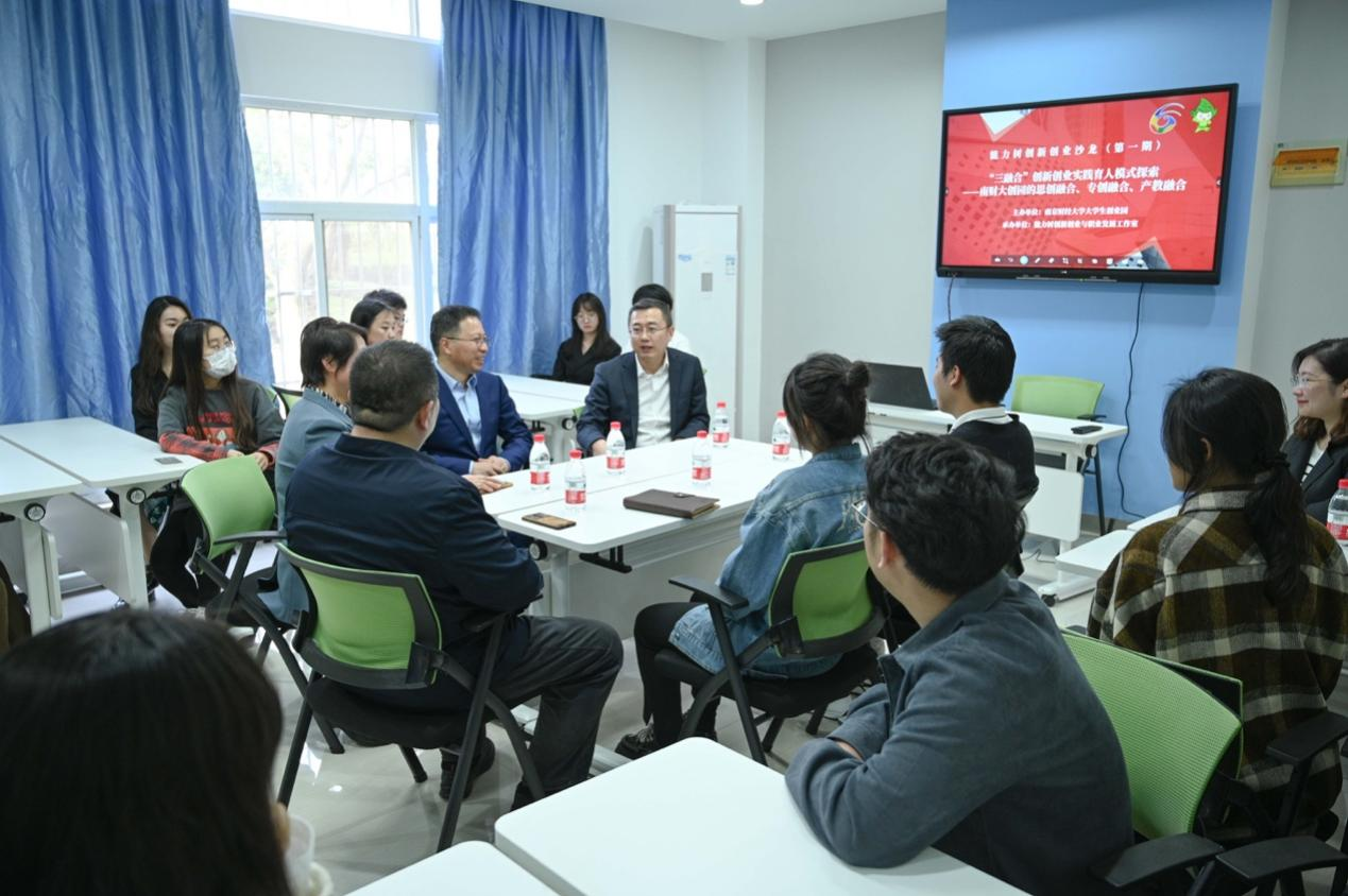 赵国栋副校长为“能力树创新创业沙龙”揭牌,随后参加了第一期“能力树”创新创业沙龙。本次沙龙主题为“‘三融合’创新创业实践育人模式探索——南财大创园的思创融合、专创融合、产教融合”。沙龙现场,卜金涛书记介绍了“能力树”创新创业沙龙的基本情况。韩力争部长表示,大学生创新创业园是bat365学生参与创新创业实践的重要窗口与服务平台,今后将进一步加强园区创业孵化、培训、展示等功能,通过不断推进“能力树”创新创业沙龙等一系列创新创业工作项目,助力大学生成长为推动区域经济社会发展的生力军。企业嘉宾毛友俊分享了创业感悟,提出创业要不忘初心、持之以恒、专注前行。青年创业者张子信、瑟琳格同学结合自身创业经历,畅谈创业过程中的收获。现场同学们踊跃发言,提出了创业过程中的困惑和想法,并对资源整合、硬件设施等方面提出了需求和建议。