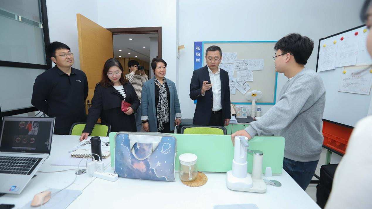 沙龙交流后,赵国栋副校长一行参观了校大学生创新创业园,了解在园企业和孵化项目,听取创业团队成员的创业想法和建议。