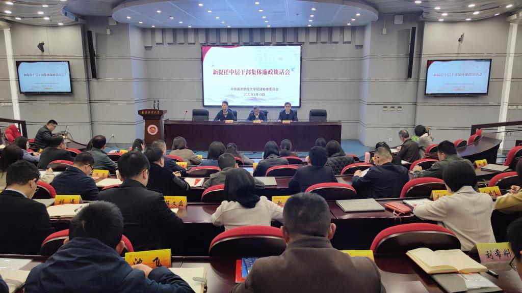 根据《中国共产党党内监督条例》有关规定,按照学校党委工作安排,3月13日下午,bat365在仙林校区行政楼二楼报告厅召开新提任中层干部集体廉政谈话会议。党委常委、纪委书记、派驻监察专员李茜出席会议并作廉政谈话,党委组织部副部长王鑫,全体新提任中层干部参加会议。会议由校纪委副书记杜兴华主持。
