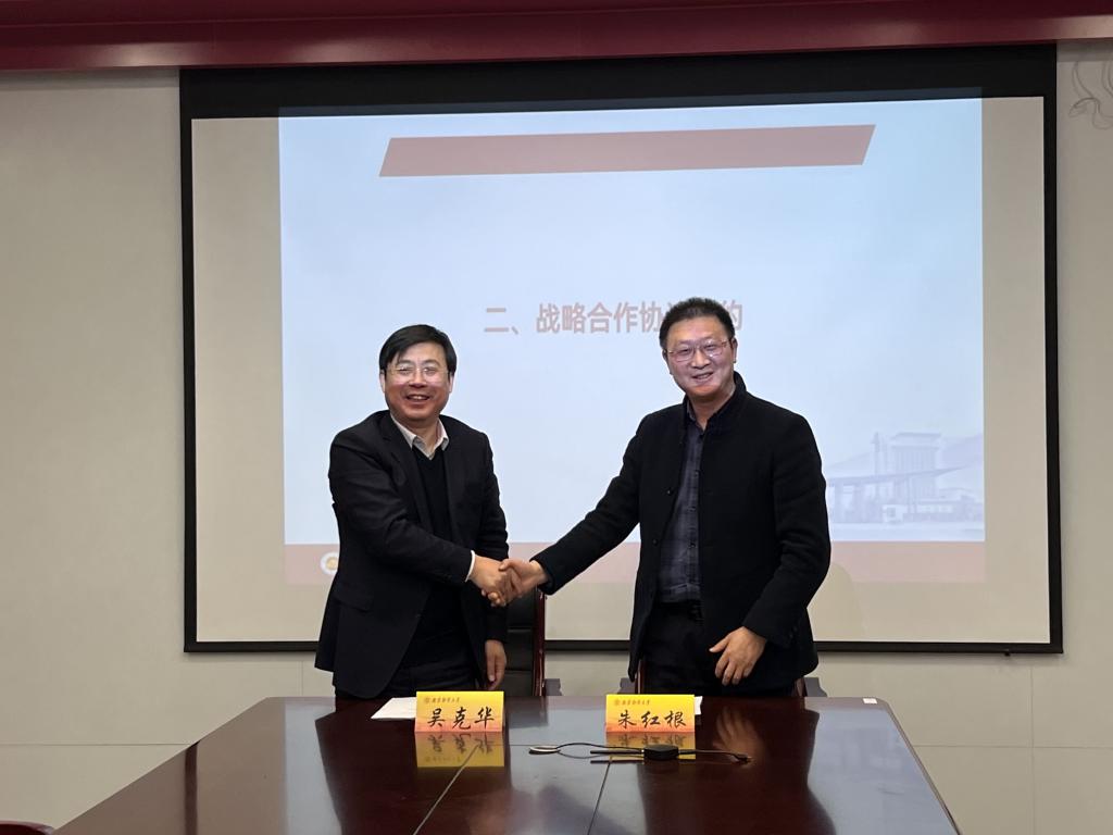 最后,朱红根院长与吴克华董事长签署了《bat365官方网站经济学院与江苏科易达环保科技股份有限公司战略合作框架协议》,并聘任吴克华董事长为绿色经济发展研究院兼职教授。根据协议,双方将在流域水环境治理、环境政策咨询、碳经济与管理交叉学科人才培养和师资建设、课程研发、碳经济理论与实践研究、生态环境管理决策支撑、科研平台建设、实习就业基地建设等方面开展深入合作。