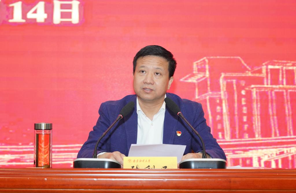 张利民书记代表学校作动员讲话。张利民书记指出,开展学习贯彻习近平新时代中国特色社会主义思想主题教育,是当前一项重大政治任务,也是今年学校工作的重中之重。全校上下要更加紧密地团结在以习近平同志为核心的党中央周围,切实把思想和行动统一到习近平总书记重要讲话精神和中央、省委决策部署上来,以高度的政治自觉、饱满的政治热情、严肃的政治态度,积极投身主题教育,确保取得实效,在问需于师生、问计于师生、问效于师生中推动主题教育更加深入人心、温润人心,推动党员干部将焕发出来的学习工作热情转化为推进全国一流省属财经类高校建设的强大动力,奋力开创南财大更加美好的未来,以实际行动和优异成绩迎接学校第四次党代会胜利召开!