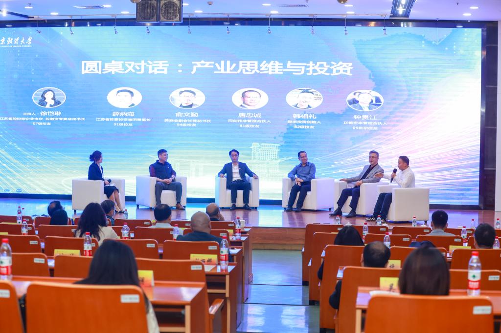 在圆桌对话环节中,同创伟业管理合伙人唐忠诚(81级校友)、楚禾投资创始人韩相礼(82级校友)、江苏省苏豪投资集团董事长薛炳海(91级校友)、苏商会副会长兼秘书长俞文勤(94级校友)和正善资本管理合伙人钟贵江(05级校友)就产业思维与投资、校友经济、校友圈建设等话题进行了热烈交流。