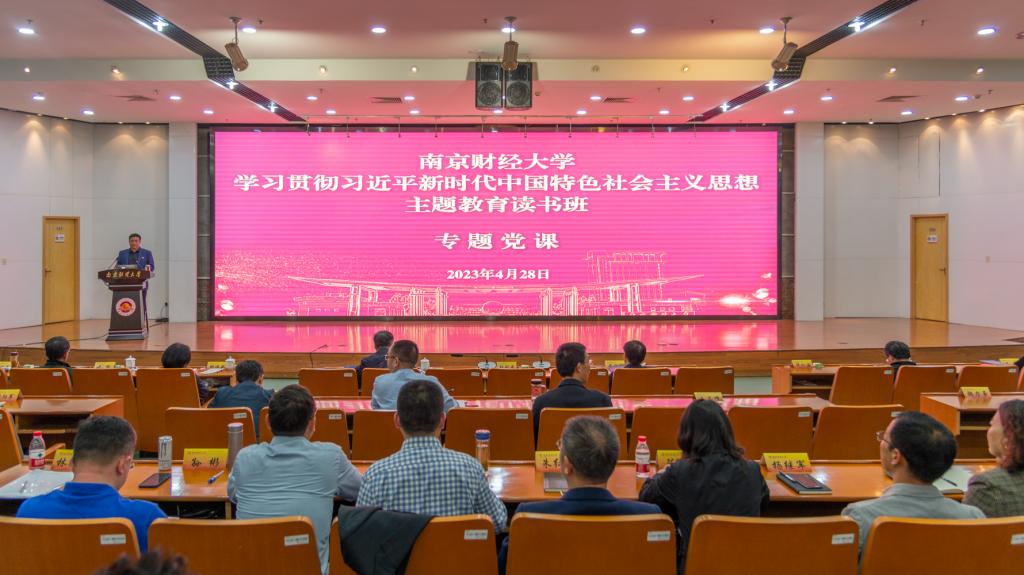 根据学校主题教育工作安排,4月28日下午,学校主题教育领导小组组长、校党委书记张利民,学校主题教育领导小组副组长、党委常委、纪委书记李茜,学校主题教育领导小组成员、党委常委、总会计师黄建元,在仙林校区图书馆报告厅讲授学习贯彻习近平新时代中国特色社会主义思想主题教育专题党课。省委第十九巡回指导组庾卫东处长和陈佳处长莅临现场指导。全体在校校领导、全体中层领导干部以及基层党支部书记、学生党员代表参加党课学习。