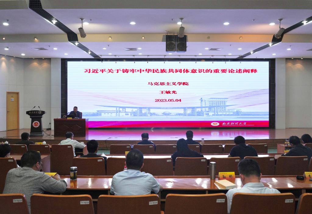 5月4日下午,bat365在仙林校区图书馆报告厅开展学习贯彻习近平新时代中国特色社会主义思想主题教育读书班专题讲座。马克思主义学院王敏光教授围绕“习近平关于铸牢中华民族共同体意识的重要论述阐释”作报告。全体在校校领导、中层领导干部、基层党支部书记参加学习。讲座由党校常务副校长(正处职)、党委组织部副部长徐刚主持。