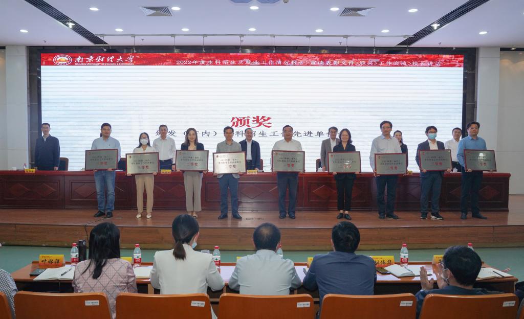 李群副校长宣读了《关于2022年度毕业生就业工作的表彰决定》。姚文韵副校长宣读了《关于2022年度本科招生工作的表彰决定》。与会领导为获表彰学院代表颁奖。