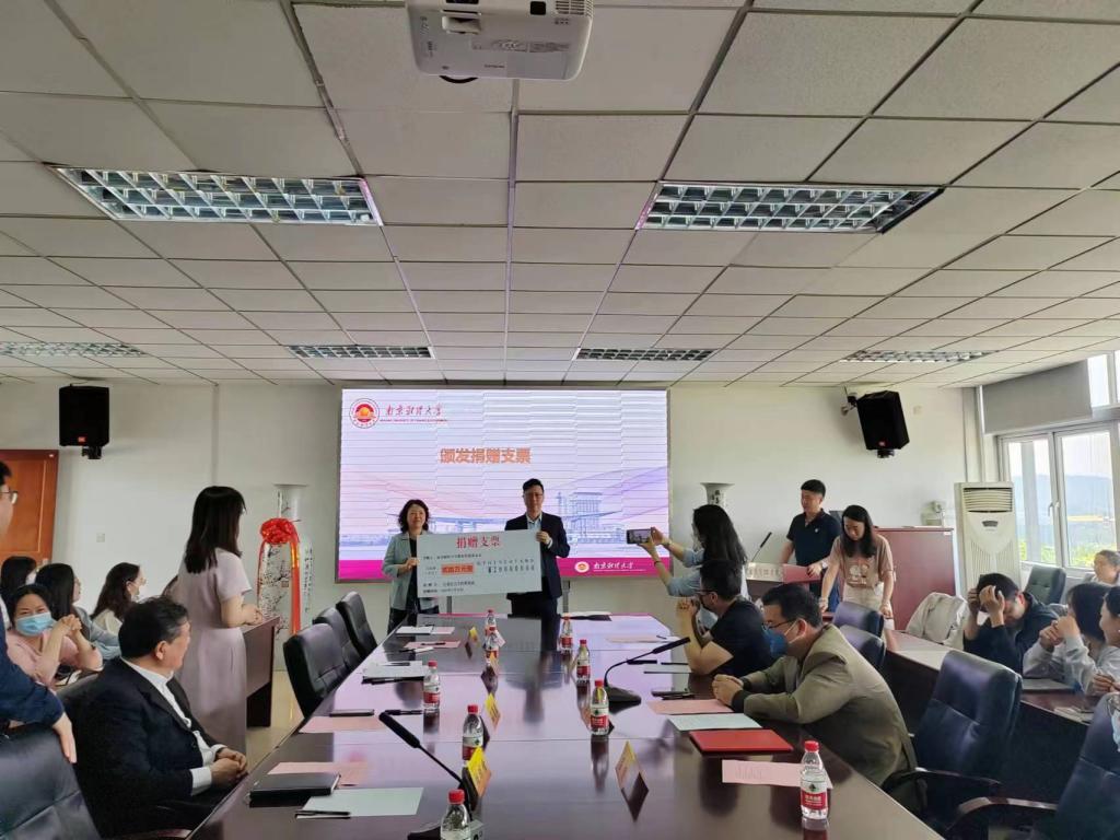 聘任仪式后,举行了“江苏安立丰控股集团教育发展基金”捐赠仪式。陆明峰处长、李玉琴书记、江苏安立丰控股(集团)有限公司副总经理吕健共同签订了捐赠协议并颁发捐赠证书和捐赠支票。