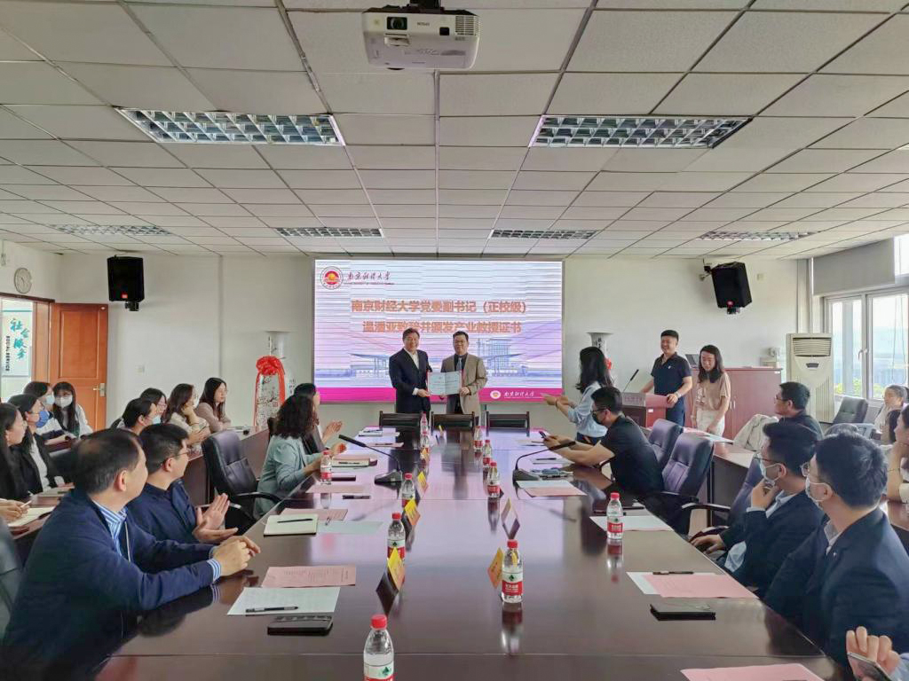温潘亚副书记为张霆辉董事长颁发江苏省产业教授聘书