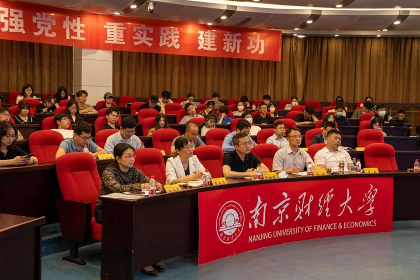为进一步深化主题教育学习成效,增强师生用党的创新理论武装头脑的政治自觉和推动中国式现代化取得新突破的历史主动,为推进高质量发展定锚引航,5月17日下午,国际经贸学院党委与后勤基建处党委在仙林校区行政楼二楼报告厅联合开展“牢记嘱托、感恩奋进、走在前列”大讨论学习荟之“师说”新发展。学校主题教育领导小组办公室主任、党委常委、副校长赵国栋出席讨论会。党校常务副校长(正处级)、党委组织部副部长徐刚,国际经贸学院和后勤基建处领导班子成员,部分师生代表参加讨论会。讨论会由国际经贸学院副院长徐圆教授主持。
