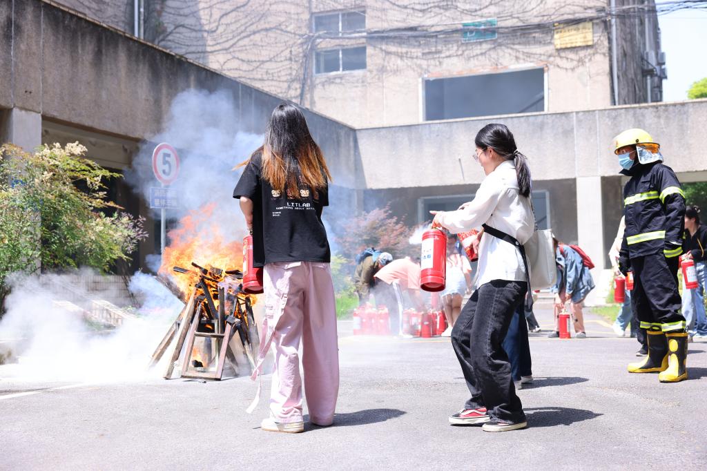 会后,保卫处、图书馆联合开展了重点区域应急疏散和消防演练。演练开始,消防警报发出,图书馆值班员立刻上报火情并启动应急疏散预案。工作人员迅速组织馆内人员安全疏散。在馆学生根据指引,低姿弯腰捂口鼻就近从消防通道疏散至室外空地。应急疏散结束后,参加演练学生认真接受灭火器使用培训,并有序进行灭火操作实践。演练全过程规范、有序、顺畅。