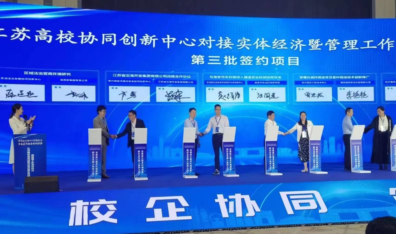 本次会议旨在整合社会各类资源,进一步促进科技成果转化,共征集高校协同创新计划三期建设以来的标志性成果196项,组织校企产学研对接100余次,成功签约合作项目55个,合同金额达1.7亿元,遴选15个合作项目现场签约,bat365及南京大学、河海大学、苏州大学等12个项目成果作为代表进行了现场路演。