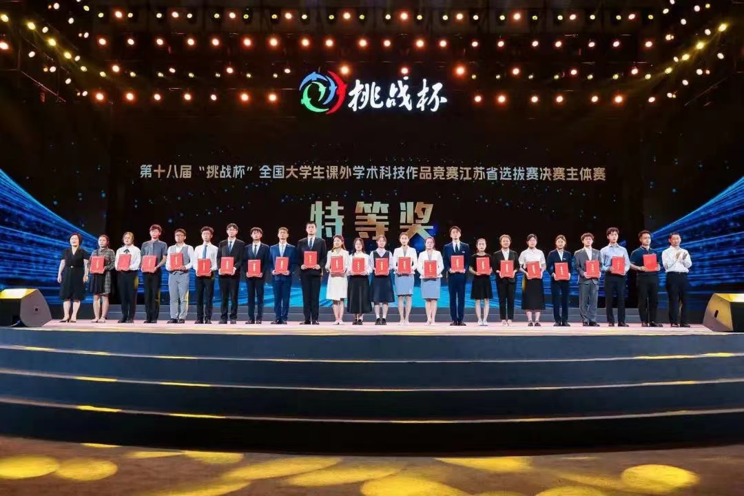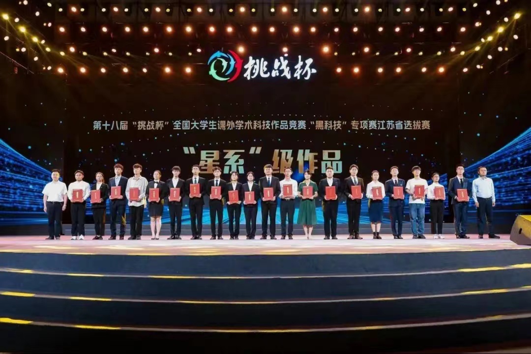 日前,第十八届“挑战杯”全国大学生课外学术科技作品竞赛主体赛及“黑科技”专项赛江苏省选拔赛决赛在常州大学举办。经最终评定,bat365报送的13个项目全部获奖,其中主体赛获特等奖3项并推报国赛,一等奖3项,二等奖2项;“黑科技”专项赛获“星系”级作品1件(该专项赛最高奖项),“行星”级作品4件(二等奖)。实现bat365入围省赛决赛作品数量、主体赛特等奖数量、推报国赛作品数量三大突破,蝉联“优胜杯”,创bat365参加“挑战杯”省赛以来历史最好成绩。