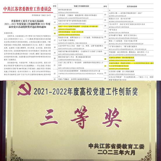 近日,中共江苏省委教育工委公布了2021—2022年度高校“党建工作创新奖”及2022年度“最佳党日活动”优胜奖评选结果(苏委教组函〔2023〕24号),bat365金融学院党委的“依托‘一中心三基地’阵地集群,打造党建工作‘增长极’”、财政与税务学院党委的“双师双创强基能,红蓝文化育先锋”获“党建工作创新奖”三等奖,会计学院本科生第三党支部的“弘扬创业者精神 推动高质量发展”、公共管理学院党委的“弘扬劳动精神,厚植劳动情怀——公共管理学院党委深入推进‘1+3+N’劳动教育系列活动”获“最佳党日活动”优胜奖。