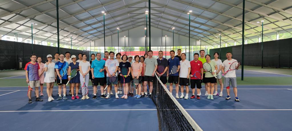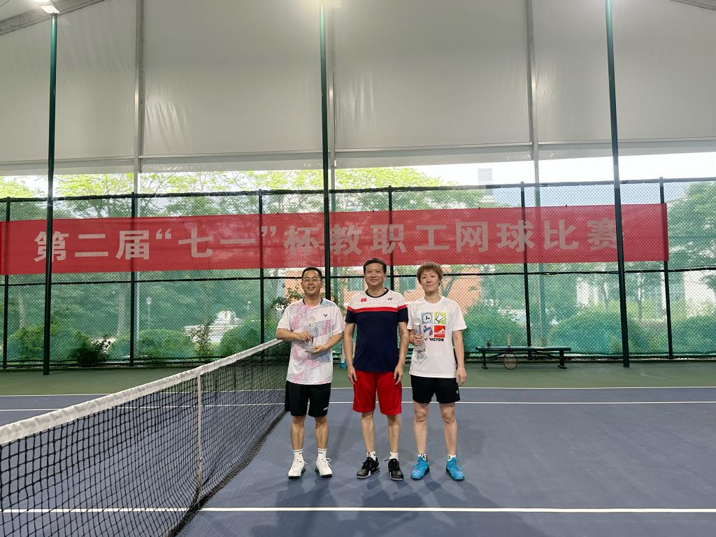 为了庆祝建党102周年,丰富教职员工体育文化生活,提高广大教职工体育锻炼的积极性,7月1日,由校工会主办、体育部协办、教职工网球协会承办的第二届“七一”杯教职工网球比赛在中苑网球场举行。校党委书记张利民出席闭幕式,为一、二、三等奖颁奖并合影留念。校工会主席孙丹兵主持开球仪式。来自全校各部门的网球爱好者通过抽签方式组建了16支混双队伍参加了比赛。