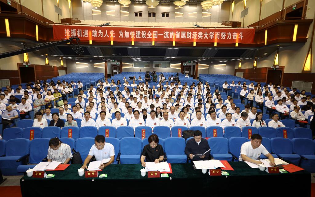 张利民书记在报告中指出,过去五年,在省委、省政府的正确领导和省委教育工委、省教育厅的具体指导以及社会各界的关心支持下,学校党委团结带领全校师生员工解放思想、创新实干,较好地完成了第三次党代会提出的各项任务,学校事业发展迈上了新台阶。坚持党的领导,党建和思想政治工作取得新成效;强化内涵建设,学校高质量发展实现新突破;深化改革创新,治理保障水平获得新提升。张利民书记表示,这些成绩的取得,离不开党和政府的领导与支持,离不开社会各界和广大校友的关心与帮助,离不开历代南财人的接续奋斗,更离不开全校党员和广大师生员工的同心同德、拼搏奋进。 张利民书记代表学校党委,向关心支持学校发展的各级领导、各界朋友和广大校友,向学校历届老领导和离退休老同志,向全校党员和广大师生员工,致以诚挚的感谢和崇高的敬意。