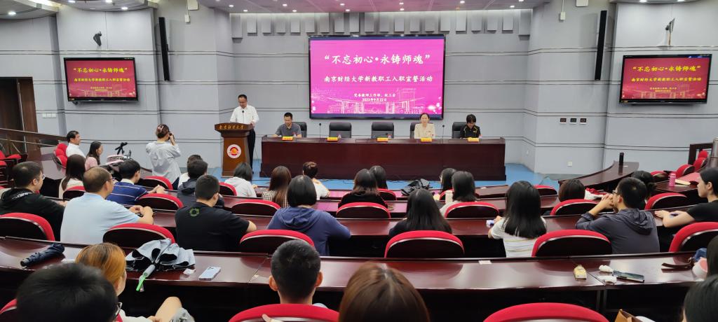 上午8时30分,入职宣誓仪式在仙林校区行政楼二楼报告厅举行。党委教师工作部部长郝园园传达了习近平总书记教师节重要指示精神,之后带领大家进行了入职宣誓。铿锵的誓言在报告厅回荡,坚定的决心在这一刻表明,现场充满了庄严的仪式感、神圣感和使命感。