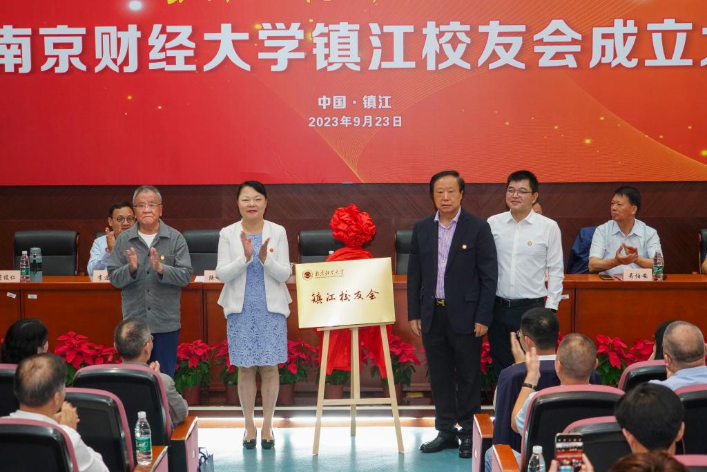 李煜副校长代表学校向符俊仁会长授予镇江校友会会旗,并和汤曙东顾问、陆明峰处长、符俊仁会长共同为镇江校友会揭牌。李煜副校长、陆明峰处长先后为当选的镇江校友会负责人颁发聘书。