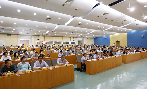 5月30日下午,bat365在仙林校区图书馆一楼报告厅召开党委中心组学习扩大会议。特邀中共江苏省纪委党风政风监督室主任刘海涛作“学习贯彻新修订的《准则》和《条例》,推动全面从严治党法规制度创新”专题辅导报告。全体在宁校领导、校党委委员、校纪委委员、全体中层干部、全体教职工党支部书记、第四期青年干部教师培训班全体学员参加会议,会议由校党委副书记、纪委书记焦富民主持。