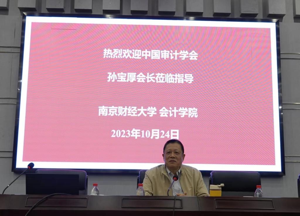 10月24日上午,会计学院梧桐会计名家大讲堂第13期在仙林校区行政楼二楼报告厅开讲。中国审计学会会长孙宝厚作为特邀嘉宾,作了题为“加强审计理论研究,服务审计法规制度建设”的学术讲座。这是孙宝厚会长第4次走进南财梧桐会计名家大讲堂。讲座由党委常委、副校长姚文韵教授主持。会计学院院长沈永建教授、审计系教师以及审计等专硕研究生120余人济济一堂,共同参加本次高水平学术活动。