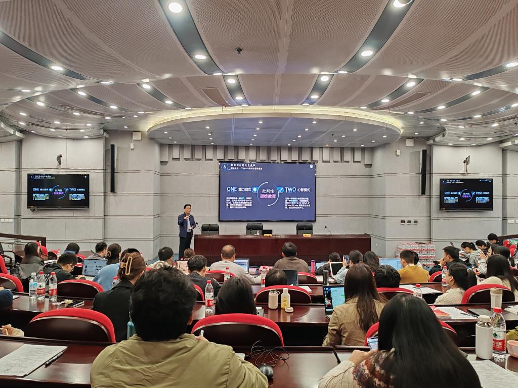 国家级教学名师、南京理工大学钟秦教授,以“全景教学,融会贯通”为主题,为青年教师教学规范、教案设计、教学比赛等提供宝贵指导建议。他结合36年从教经历,围绕“四个一”,即“一门课程”“一个优秀教学案例设计”“一个优秀的课堂教学实录”以及“一份教学创新设计汇报”层层递进展开讲授。他强调,优秀的教学设计应以师德为基础,以科研为积淀,以教学艺术作支撑;好的课程应展示真理的魅力、逻辑的魅力和教师人格的魅力。南京师范大学王永贵教授作题为“习近平总书记关于文化思想的论述”的讲座,他从习近平文化思想的重大意义、生成逻辑、核心要义和实践要求四个方面深入解读习近平文化思想的核心要义,帮助青年教师们深刻领会“明体达用,体用贯通”的指导意义。南京大学哲学系刘鹏教授以“教以成人:课程思政的理念与实践”为题,通过解读习近平总书记关于课程思政的重要论述以及课程思政的相关政策文件,明确了教师应坚持以“立德树人”为根本任务,各类课程都应和思政理论课同向同行,形成协同效应。