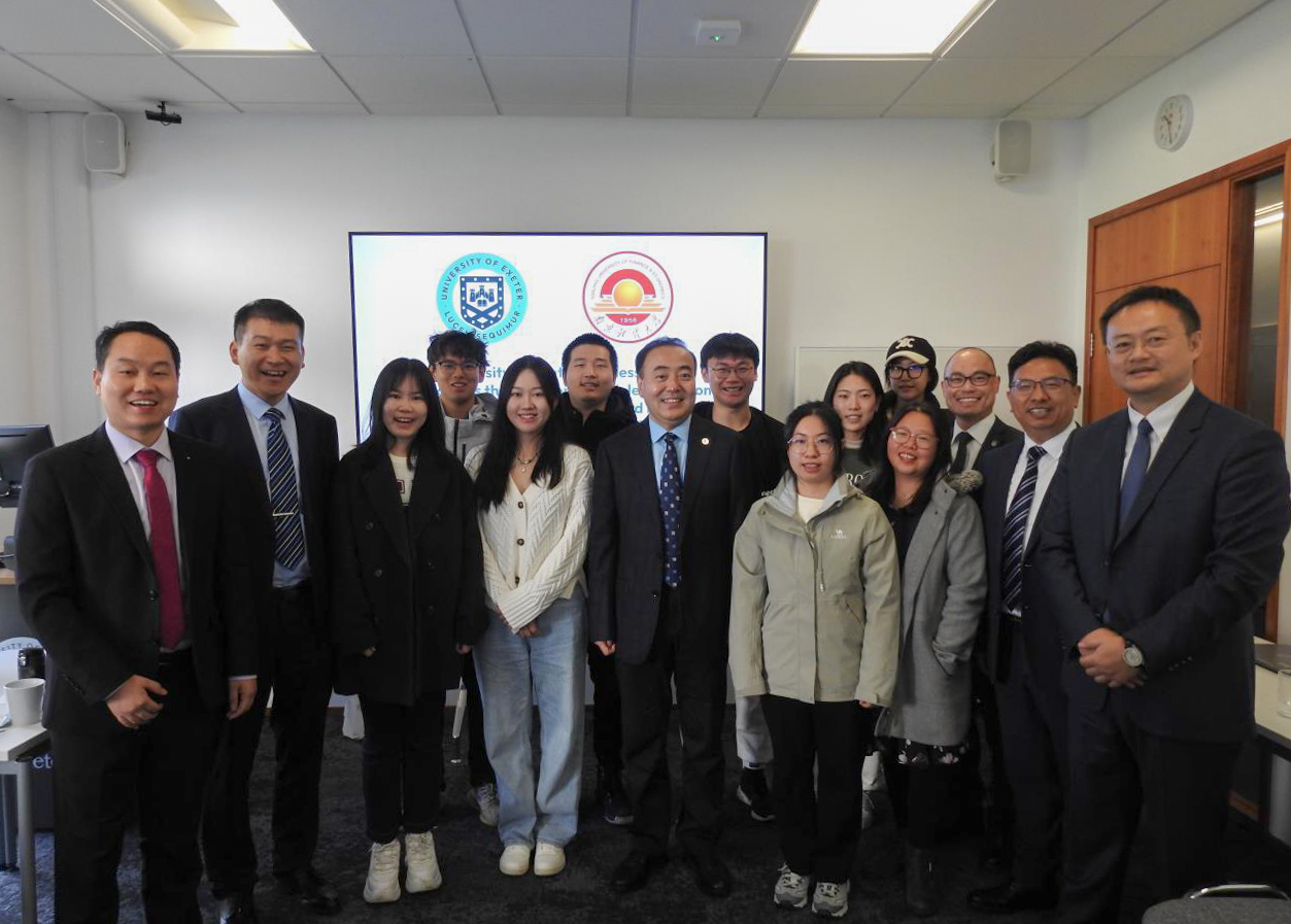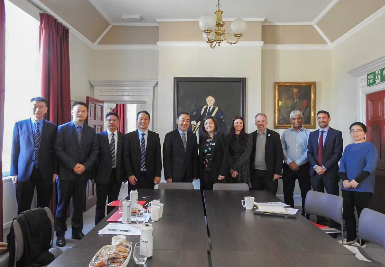 在埃克塞特大学访问期间,代表团与埃克塞特大学代理副校长、商学院副院长David Boughey教授及相关部门、学院负责人等进行友好会谈。程永波校长回顾了bat365与埃克塞特大学的友好合作历程,并表示,两校具有共谋发展的合作意愿、互联互通的合作基础,本次到访意在推动双方更深更实的交流合作,包括构建教师互访机制,设立研究生合作办学项目或合作办学机构,拓展金融、经济、工商管理等专业领域的人才培养合作等。David Boughey教授对我方代表团的访问表示热烈欢迎,并表示希望与bat365继续紧密联系、深入合作、共谋发展。程永波校长与David Boughey教授共同签署了合作备忘录。双方本着务实、真诚、共赢的理念,拟成立联合推进工作组,推动合作项目的落地落实。会谈后,程永波校长还专门看望了正在埃克塞特大学交流学习的bat365学子,仔细询问了同学们的学习生活情况,鼓励大家抓住宝贵学习机会,练就过硬本领,早日成长成才,为祖国建设和学校发展贡献青春力量。