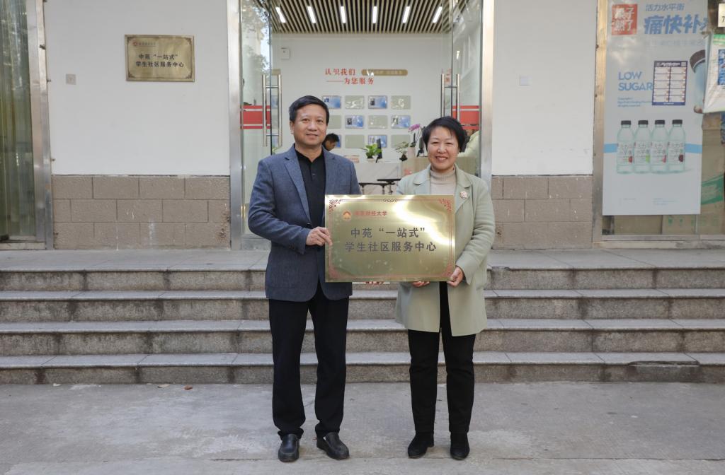 现场,张利民书记为中苑“一站式”学生社区服务中心揭牌。
