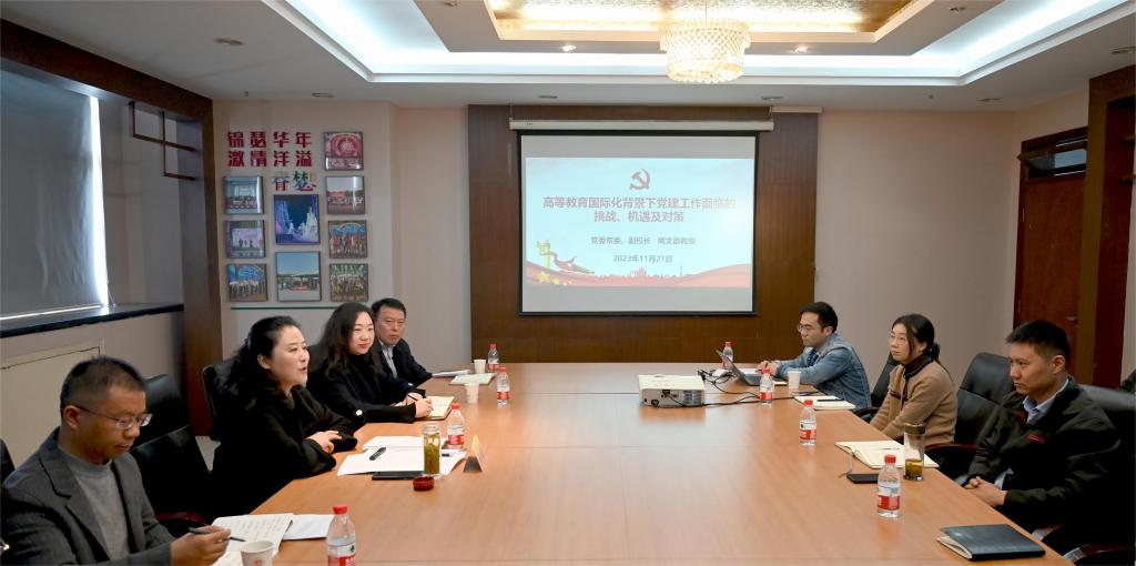 姚文韵副校长表示,当今世界经济全球化进程不断加快,高等教育国际化趋势不断显现,高校国际交流日益增多,中外师生交流日益频繁密切,给高校党建工作带来了新的挑战和机遇。我们要把握机会、应对挑战,不断创新和拓展党建工作的渠道与空间,谱写高等教育国际化背景下高校党建工作的新篇章。