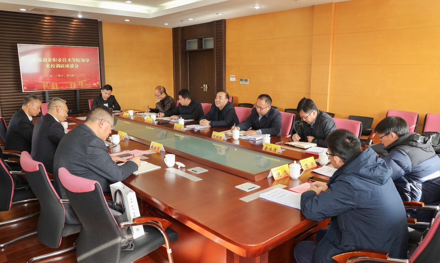 12月6日,无锡商业职业技术学院党委副书记、院长徐汉文,党委委员、副院长朱璋龙一行来bat365开展专题调研座谈。校长程永波,党委常委、副校长叶林祥在仙林校区行政楼1101会议室与来宾座谈。无锡商业职业技术学院教务处处长张云河,学校法制办公室副主任(主持工作)吴庚祐、国际经贸学院院长余泳泽、信息工程学院院长黄健、党政办副主任沈国彬、教务处副处长万兴、食品科学与工程学院副院长沈飞参加座谈会。