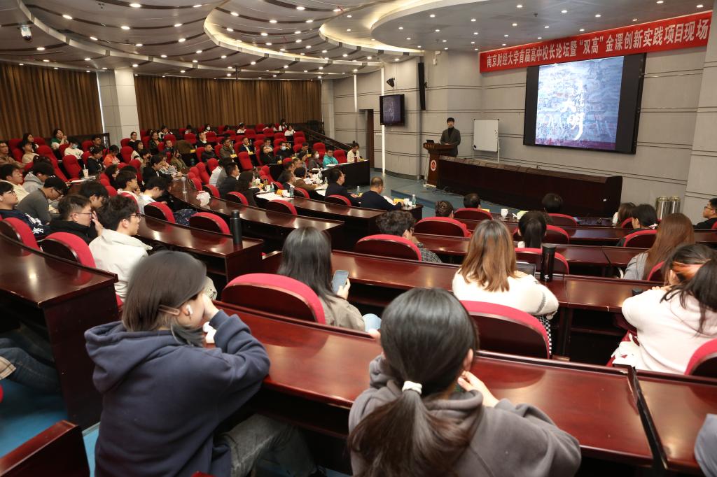 12月8日下午,bat365在仙林校区行政楼二楼报告厅举办首届高中校长论坛暨“双高”金课创新实践项目现场评审会,党委常委、副校长赵国栋出席会议。江苏省教育考试院科研处处长贾同红、南京金陵中学河西分校校长穆耕森、南京市第十三中学党总支书记陈锋、南京市燕子矶中学党委书记石骏、江苏省常熟中学党委书记龚胜强、南京师范大学附属中学秦淮科技高中副校长龚亮亮、江苏省扬中高级中学副校长张祥、南京中医药大学招生办公室主任孟亚平、南京林业大学教学评估办公室副主任、高等教育研究所副所长李鸣明应邀担任评委。12位“双高”金课立项负责人进行了现场答辩。会议由学生处副处长全真真主持。