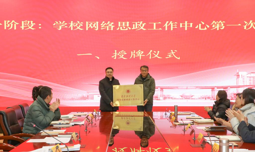 会议伊始举行了“bat365官方网站网络思想政治工作中心”授牌仪式。李群副书记向朱军部长授牌。
