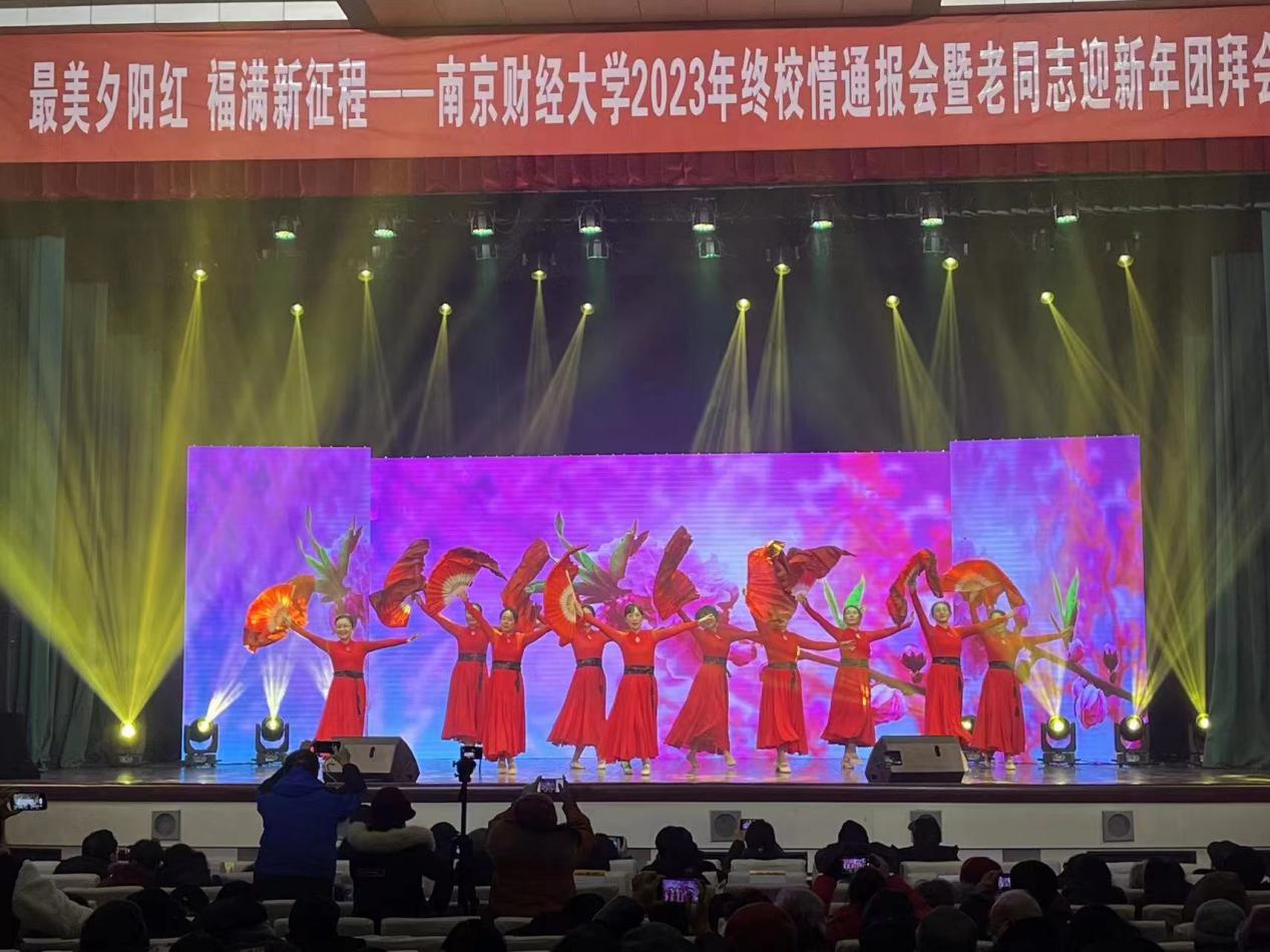 树高千尺不忘根,水流万里总思源。校情通报会后,bat365夕阳红艺术团带来精彩的“最美夕阳红▪福满新征程”文艺演出。在岁序更迭、辞旧迎新的喜庆时刻,一年一度的团拜会活动及时把学校党委行政的关怀和温暖送到离退休老同志的心坎上,让离退休老同志有了更多交流和展示的舞台,营造了“南财一家亲”的良好氛围,增强了离退休老同志的幸福感和归属感。团拜会在激昂欢快的歌伴舞《我和我的祖国》中圆满结束。