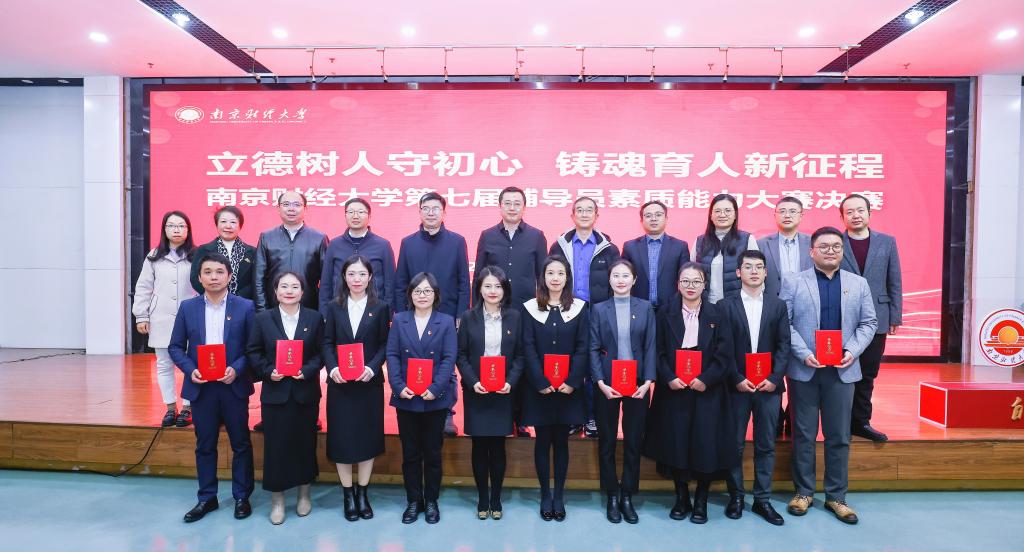 12月29日,由党委学生工作部、党委研究生工作部联合主办的第七届辅导员素质能力大赛复赛和决赛在仙林校区图书馆一楼报告厅举行。宿迁学院党委常委、副院长侍旭,中国药科大学党委学工部、研工部部长杜文清,南京农业大学学工部部长熊富强,南京师范大学学生工作处处长景飞,南京医科大学本研学生工作部常务副部长、学生工作处处长林炜,南京艺术学院党委学生工作部部长仲社,南京师范大学保卫部部长、江苏省高校辅导员培训与研修基地办公室主任蔡炳锋,以及南京工业职业技术大学学工部部长、学生处处长朱燕,南京师范大学学工部副部长、学生处副处长汪育文,第九届江苏高校辅导员素质能力大赛一等奖获得者、2023年江苏省最美辅导员、南京师范大学新闻与传播学院研究生辅导员钱珺,南京航空航天大学心理健康教育中心主任杨雪花受邀分别担任决赛和复赛评审专家。党委常委、副校长赵国栋出席决赛并为获奖选手颁奖,党委学生工作部部长、学生处处长韩力争,党委研究生工作部部长王立峰,党委学工部、研工部相关领导,各学院党委副书记、学工秘书、全体辅导员、学生处思政科全体成员到场观摩。比赛由金融学院辅导员韩娅主持。