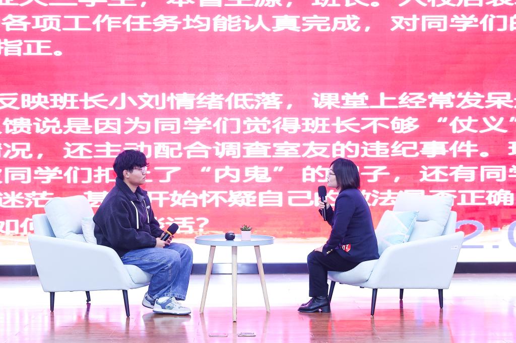 谈心谈话环节通过情景再现,真实还原和演绎辅导员与学生谈心谈话的日常状态,赛场上选手们以心换心、沉着面对,从学业、就业、资助、人际关系、心理建设、违纪处理等多方面、多角度分析问题要害,倾听学生心声,解答学生困惑,帮助学生走出“心理卡点”,坦然面对“成长阵痛”,做好学生成长成才的人生导师和健康生活的知心朋友。现场师生不时爆发阵阵掌声,气氛热烈。