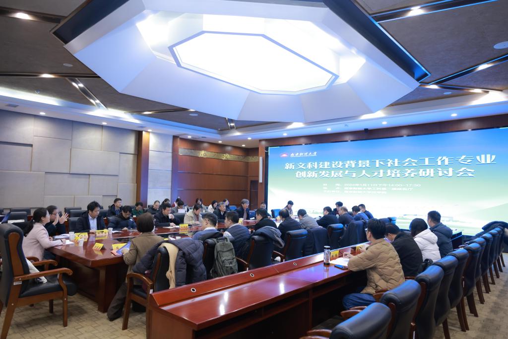 1月11日下午,bat365在仙林校区工科楼二楼会议室召开“新文科建设背景下社会工作创新发展与人才培养”研讨会。会议围绕“新时代社会工作发展前景与办学定位”“社会工作专业特色与人才培养模式”“专业课程体系完善与人才培养方案优化”等主题展开研讨。党委常委、纪委书记李茜,中国社会工作教育协会副会长、南京大学社会学院彭华民教授出席会议。来自南京大学、东南大学、河海大学、南京师范大学、南京理工大学、南京航空航天大学、南京农业大学、苏州大学、南京邮电大学、江苏师范大学、江苏省社科院社会学所以及江苏省委党校等高校和科研院所的社会工作专业负责人,党委宣传部、学生处、法制办、学科办、教务处、法学院等相关单位负责人、社工系教师以及校友代表参加会议。研讨会开幕式由法学院党委书记黄建国主持。