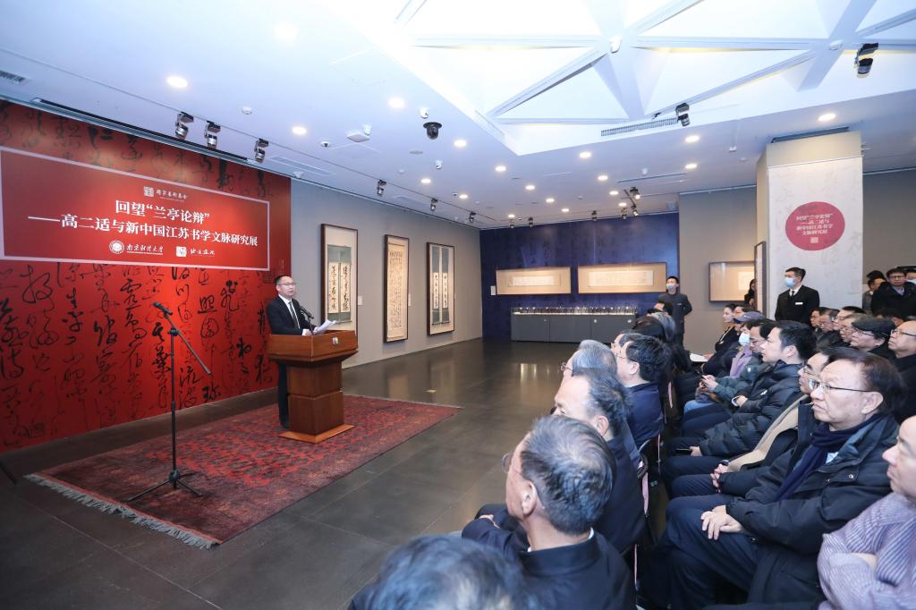 当日下午,北京画院院长吴洪亮先生主持本次展览开幕式。bat365党委常委、副校长叶林祥代表主办单位致辞。他向各位领导、嘉宾的到来表示诚挚欢迎,向展览的圆满举办表示热烈祝贺。他表示,北京画院作为新中国最早的专业画院,大师辈出。本次展览将高二适先生的书法与齐白石先生、黄宾虹先生的绘画共同呈现在这样的艺术殿堂,不仅是中国传统书画文化的交流,也是对江苏省特色文化的弘扬与展现。本次展览旨在弘扬“兰亭论辩”的学术风尚和艺术精神,展示高二适先生的文士风骨和高贵品格,展现高二适先生博大精深的书法艺术造诣,探究他在江苏当代书学发展中的作用与地位。bat365官方网站作为江苏高水平大学建设高校,一直将文化传承作为长期坚守的初心使命。学校大力实施“文体增色”特色工程,深入开展艺术教育,积极推进校园文化建设。近年来,学校在传统文化建设和各项艺术实践活动中都取得了丰硕成果,主办本次展览是bat365在弘扬中国传统文化、传播中国价值道路上的一次新的实践。