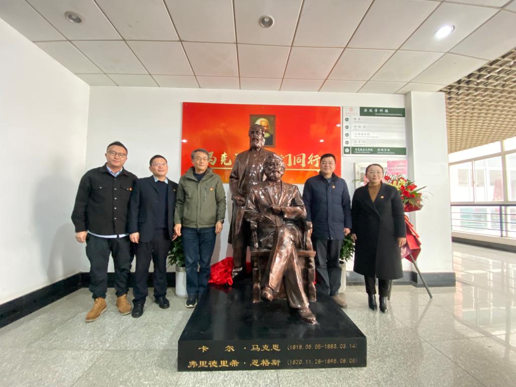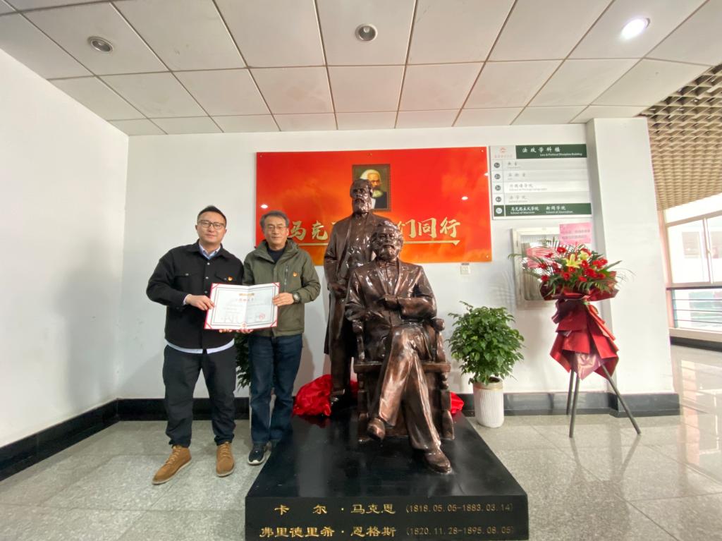 据悉,此次马克思恩格斯雕像是由马克思主义学院徐梓彦老师捐赠。他说,雕像的落成凝聚了马克思主义学院全体师生的智慧和心血,饱含着对学校的深情厚谊与美好祝愿。
