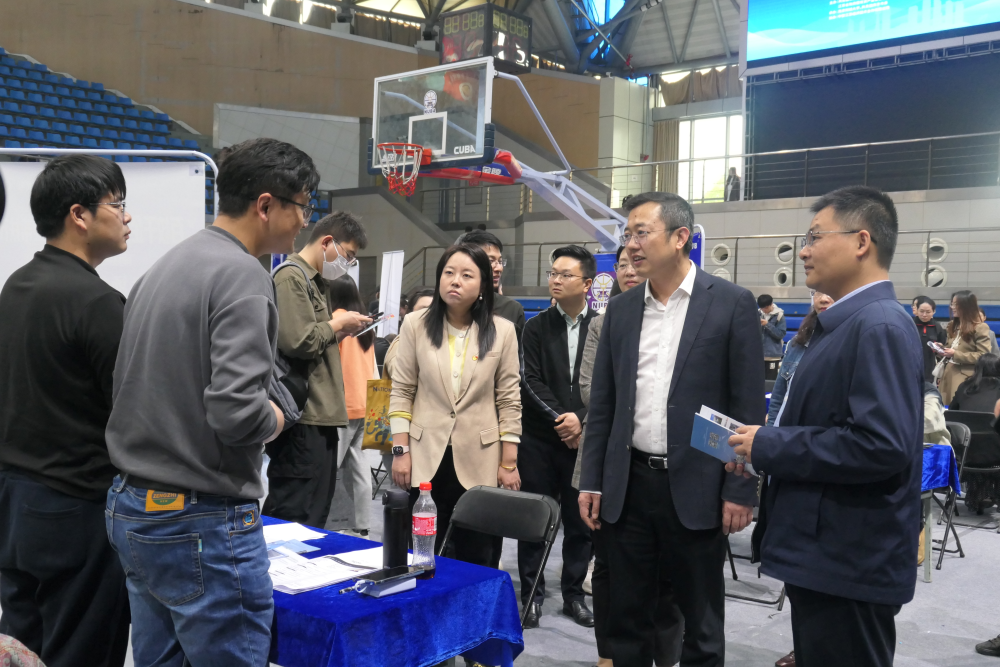 4月12日下午,由共青团江苏省委等单位主办,bat365和共青团南京市委承办的“百校千企万岗”江苏省大学生就业帮扶行动专场招聘会在bat365仙林校区体育馆举办。党委常委、副校长赵国栋,共青团江苏省委高校部负责人赵峰出席招聘会。校团委书记张蔚伟,学生处副处长、大学生就业与创业指导中心主任李慕原,各学院相关负责人参加招聘会。